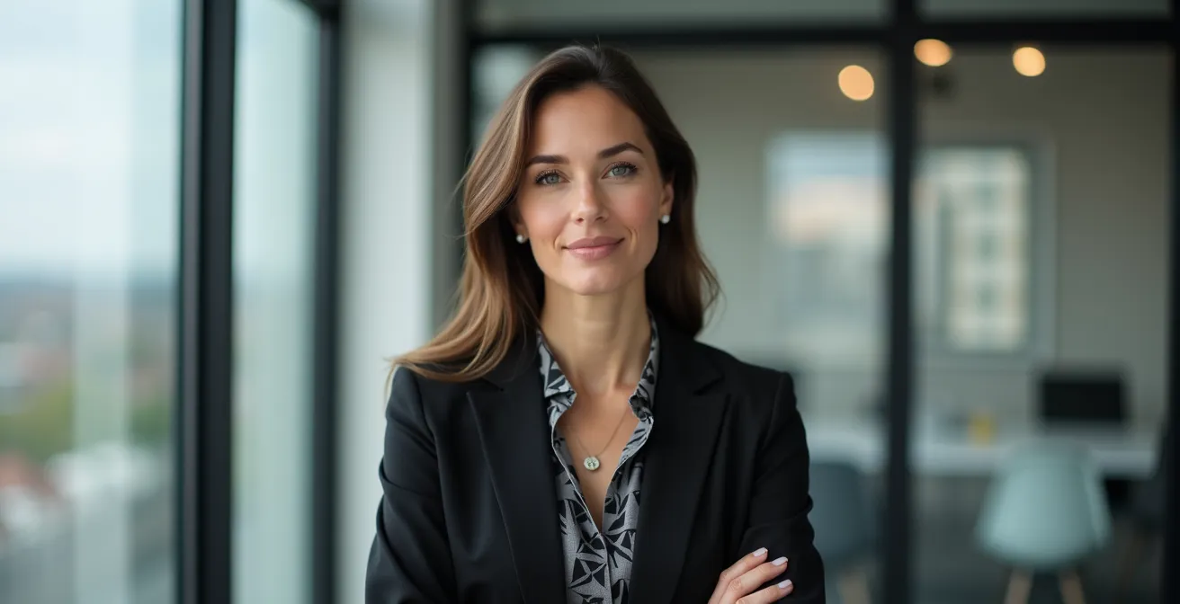 | Private Banking Frankfurt/Hamburg | Als Power-Statement akzeptabel | Hochwertige Seidenbluse unter schwarzem Blazer |